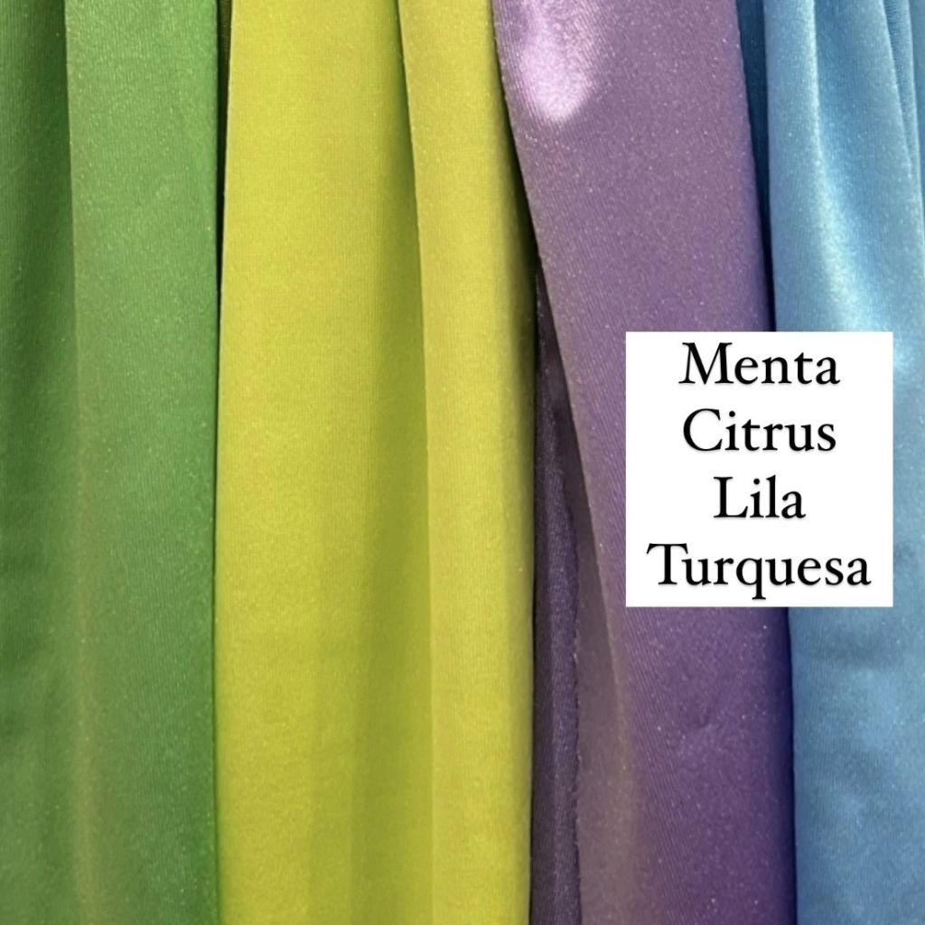 Este tejido es un satén de punto elastizado. Es un artículo con mucha caída y no transparenta. En su cara interna es lisa y suave, en su cara externa es brilloso y satinada, como una seda pero con más cuerpo. Esta hecho mayormente de poliéster, por eso es apto sublimación. Su agregado de elastano le da buena elasticidad que le aporta comodidad a la prenda.